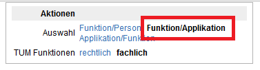 Wenn Sie wissen möchten, welche Berechtigungen die jeweilige Funktion beinhaltet, klicken Sie auf den Button „Funktion/Applikation" oben rechts. Es erscheint eine Darstellung der Berechtigungen: