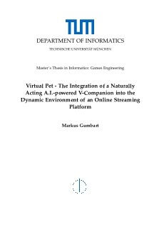 Das Projekt zielt darauf ab, eine innovative Herangehensweise zur Verbesserung der Interaktion mit Zuschauern in Live-Streams zu realisieren, indem ein natürlich eingebetteter Begleiter und Assistent des Streamers hinzugefügt wird. Dafür wird im Rahmen dieses Projekts das virtuelle Haustier Petricia entwickelt. Petricia ist eine Kombination aus einem Standard-Virtual-Pet, einem Unterhaltungsfeature für Live-Stream-Zuschauer und künstlicher Intelligenz (KI). Damit vereint sie mehrere verschiedene Richtungen des modernen digitalen Entertainments. Das Design des Haustiers basiert auf den allgemeinen Ideen und Zielen der augmented reality (AR). Ein solches Ziel ist die Verbesserung der Wahrnehmung von, und Interaktion mit der realen Welt, indem die virtuelle Welt so natürlich wie möglich und in Echtzeit mit der realen Welt kombiniert wird. Um Natürlichkeit bei Petricia zu erreichen, nutzt das System die Fähigkeiten moderner KI, indem es den Entscheidungsprozess für Reaktionen auf Chat-Nachrichten an ChatGPT auslagert. ChatGPT ist ein auf deep learning basierendes large language model von OpenAI, das in der Lage ist, verschiedene Charaktere und Persönlichkeiten darzustellen, wie in dieser Arbeit gezeigt wird. Die Persönlichkeit von Petricia wird durch das Big-Five-Persönlichkeitsmodell definiert, das die menschliche Persönlichkeit als Kombination von fünf Hauptmerkmalen und deren Ausma"s in einer Person definiert. Petricia ist jedoch nicht darauf ausgelegt, nur eine spezifische Persönlichkeit zu repräsentieren, sondern jede beliebige Kombination von Merkmalswerten, die von dem Streamer gewählt wird. Inwieweit dies in diesem Projekt gelungen ist, wird in der Arbeit getestet und dokumentiert.