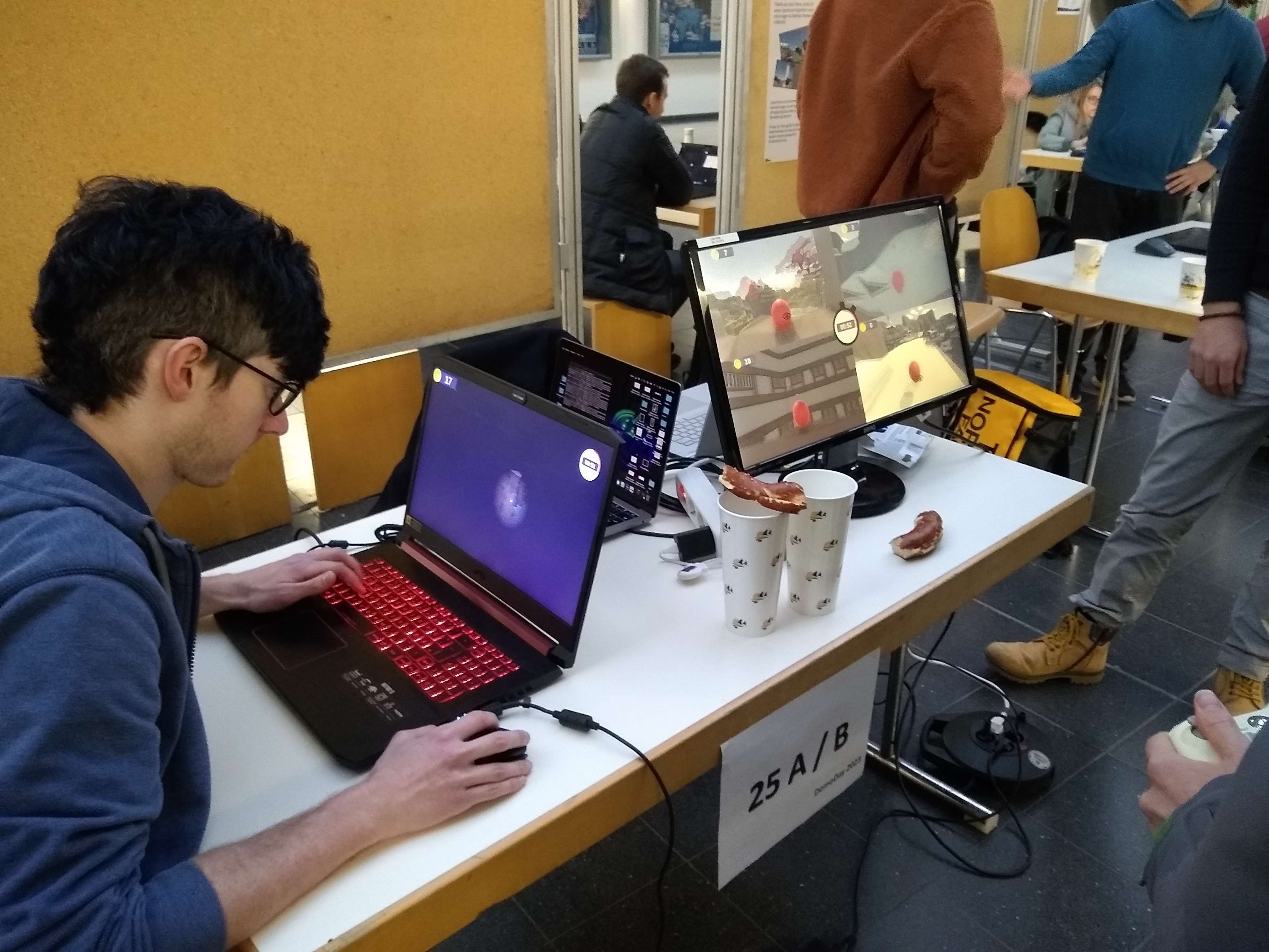 The final version of the game was showcased on TUM's Demo Day, as well as GG Bavaria.The reception was overwhelmingly positive. Especially at the GG Bavaria, where the game was displayed in the middle of full-time indie game studios, we got comments like "Where and when can I buy it? I need it!" or "This is the best game among all games displayed here!". Of course, since this is a student project, and was not meant to be commercial, we provided a link to everyone interested where they could download it for free.