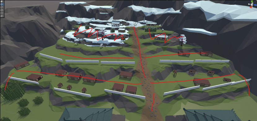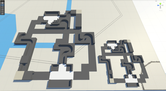 We decided on three main districts with entrances to the castle and three connecting side areas, which contain the highest loot. Furthermore, all districts are shaped through different assets and also support different gameplay.