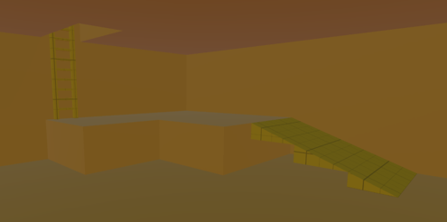 - Stairways: Stairways can look boring and feel too long pretty fast. To avoid these issues, we added landings and scaled the size of the stairways to make them way broader (e.g. instead of ~2 character sizes, use ~5 character sizes). This has the added bonus that no one can really fall off the stairs, which is usually something you want, unless it is specifically designed to be fallen off of.