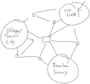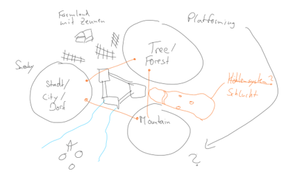 - Forrest - Jump'n Run; Mountains - Sprinting; City - Sneaking; Pillars, Lake Village - richest so Risk vs Reward