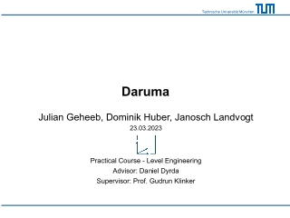 As part of the level engineering lab course, we have examined techniques of level engineering and applied them in a prototype game called "Daruma". Daruma is an asynchronous multiplayer game. The game was made with a focus on level design with the theme "taking cover". There is one seeker who can look at the whole map from above, but only through a small view cone. The seeker needs to find the runners, the other type of player. The runners explore the map, gather coins, take cover, and try to bring their coins to the seeker's castle in the middle of the map to save them permanently. Runners can additionally steal coins from other runners or expose their positions by launching fireworks at their location. In the end, the player with the most gained coins wins. It should be mentioned that the seeker gets his coins by clicking on a runner and stealing the coins currently carried by the discovered runner.
