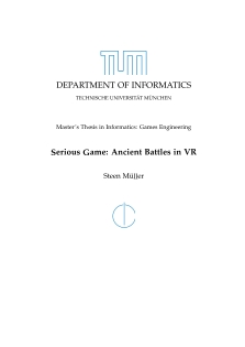 The main challenges during the development were the balance between historic authenticity and fun during the gameplay and the development of a control scheme and user interface for Virtual Reality. The thesis contains an analyzes of existing work, the requirements for the serious game, the actual implementation in Unity and an evaluation of the produced game.