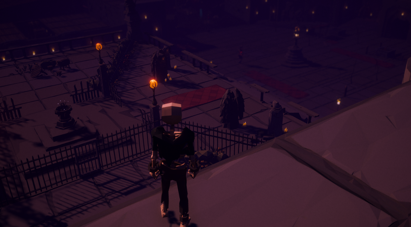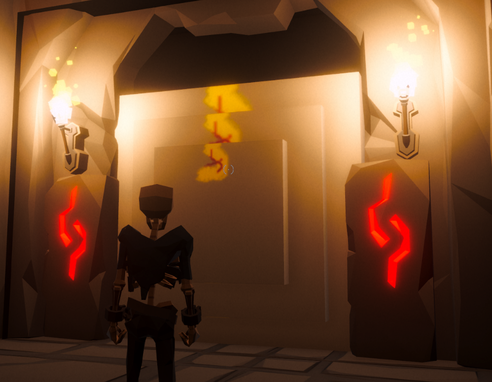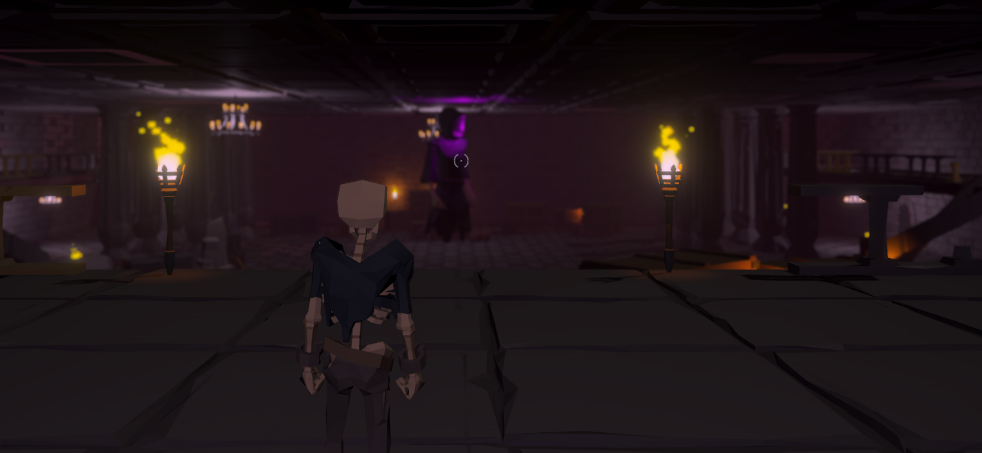 Skeletoons is a low poly style 3D Hide'n'Seek Game. The player takes in the role of a skeleton that suddenly comes to live. As it is scared of the other residents of the castle it tries to escape without being seen by any frightening creature. If they discover it on its way to the outside it will freeze in shock. Fortunately the skeleton can throw it's bones to distract enemies and sneek past them. Solve puzzles, find items to open doors, hide from the scary residents and make it out. The game consists of four levels: the castle's cellar - the starting point, the castle, the roof and the garden - the final level. The player starts in the cellar and consecutively plays through the levels until they reach the outside and the end of the game.