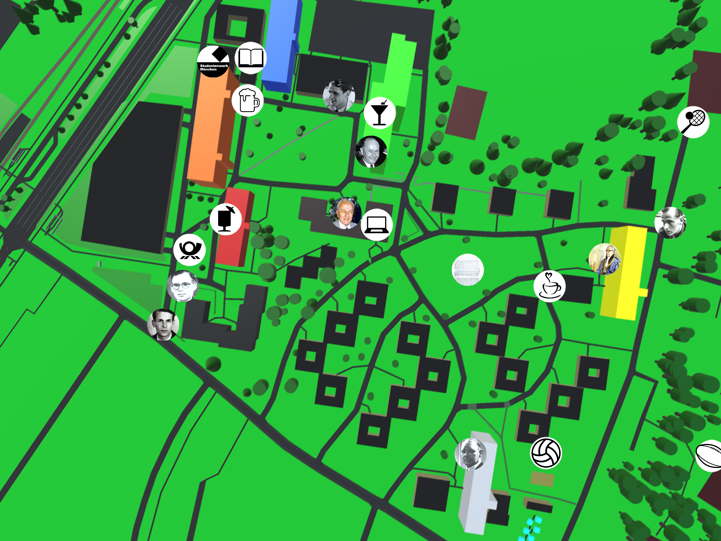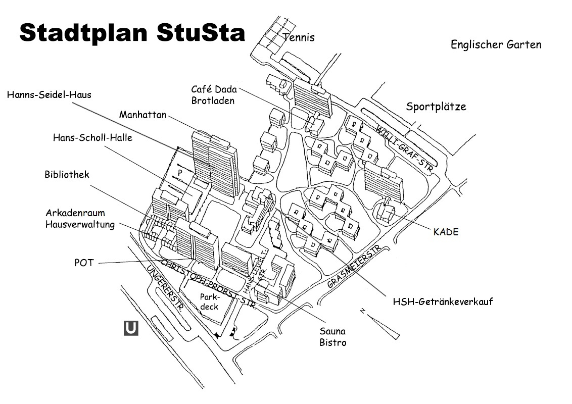 With around 2500 student inhabitants, Studentenstadt (StuSta) is Germany’s largest student housing area. Dedicated students maintain numerous facilities including a café, bars, stores and sport grounds, therefore living in Studentenstadt is akin to living in a village. The time of residence is generally restricted to three years and the StuSta has a large number of exchange students, which stay for a single semester. Consequently, the fluctuation is high and around 500 new students move in and out each semester. It would be incredibly difficult to guide every new student through Studentenstadt and few become aware of the Studentenstadt’s history.