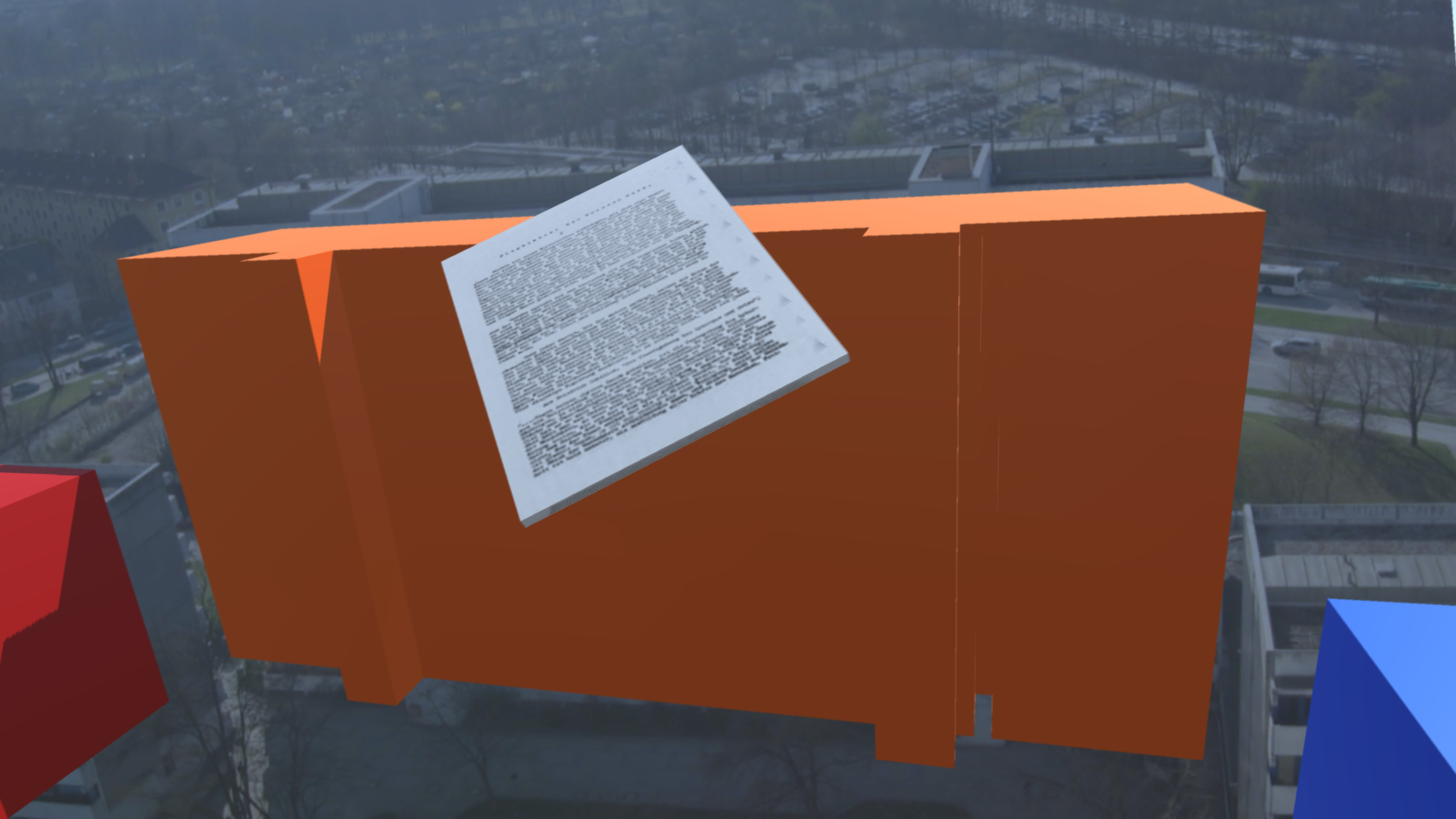 The base of what made Pokémon GO successful is collecting Pokémon, therefore collectibe leaflets were added as a creative element, in spirit of the Weiße Rose. At the end of the tutorial the players throw a leaflet in augmented reality from the tallest building of Studentenstadt. Players write a tweet-sized 140 character leaflet and see it lying on a ledge in front of them, they swipe it and watch it fall into the atrium. Later players can collect the leaflets that appear at random locations and motivate players to move around in Studentenstadt. Players would presumably not write serious content, therefore translated text passages from the leaflets of the Weiße Rose were added and gave the player insight to the content of the originals.