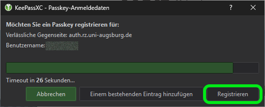 - Es öffnet sich ein KeePassXC-Fenster: "Registrieren"