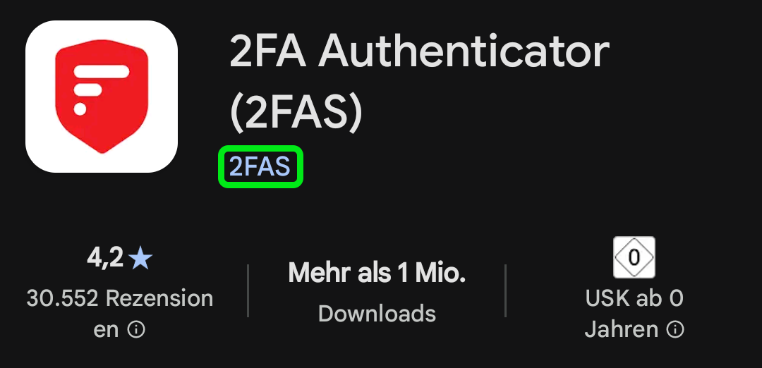 - Die App "2FA Authenticator (2FAS)" aus dem Apple AppStore (Download) oder Google PlayStore (Download) herunterladen