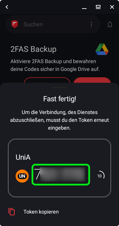 - Es wird direkt der erste Einmal-Code angezeigt