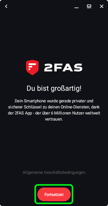 → Aus Sicherheitsgründen werden alle bestehenden Anmeldungen an anderen Geräten beendet - Die Einrichtung ist abgeschlossen