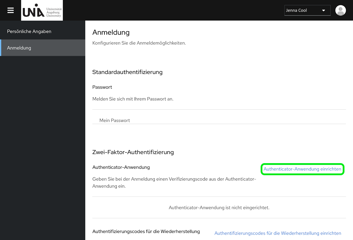 - "Authenticator-Anwendung einrichten"