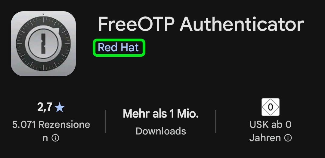- Die App "FreeOTP Authenticator" von "RedHat" aus dem Google PlayStore herunterladen