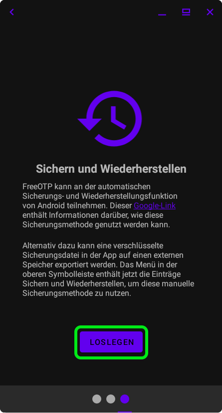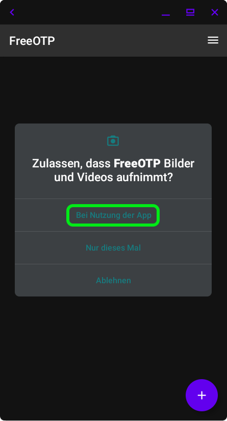 → FreeOTP ist alternativ auch über den freien F-Droid Store verfügbar - Beim ersten Start muss ggf. der Willkommens-Dialog durchgeblättert werden
