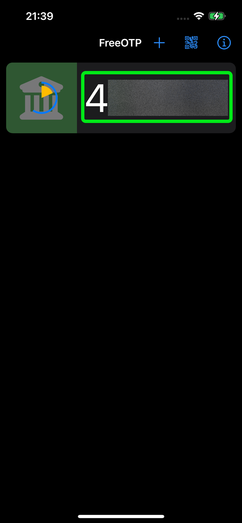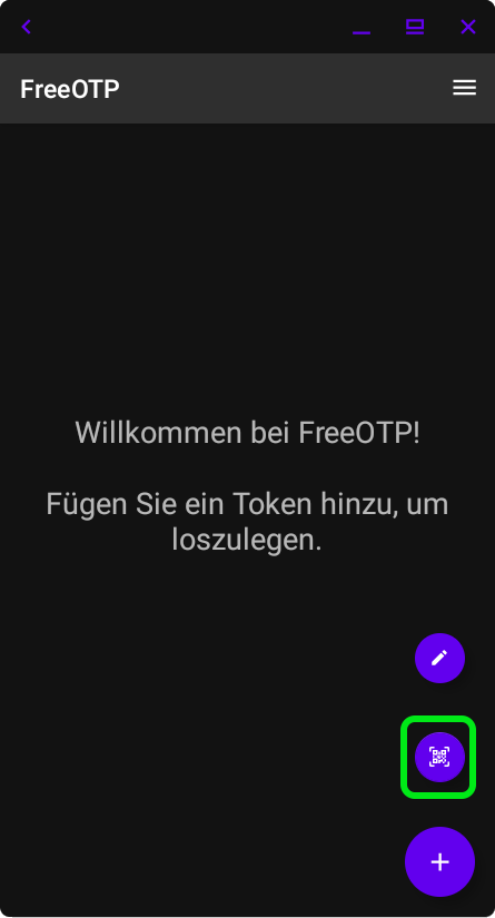 - Über das QR-Code Symbol einen neuen Eintrag hinzufügen