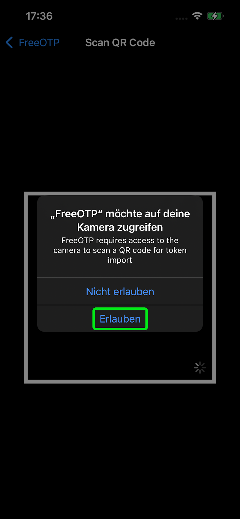 - Den im Browser gezeigten QR-Code mit dem Smartphone scannen