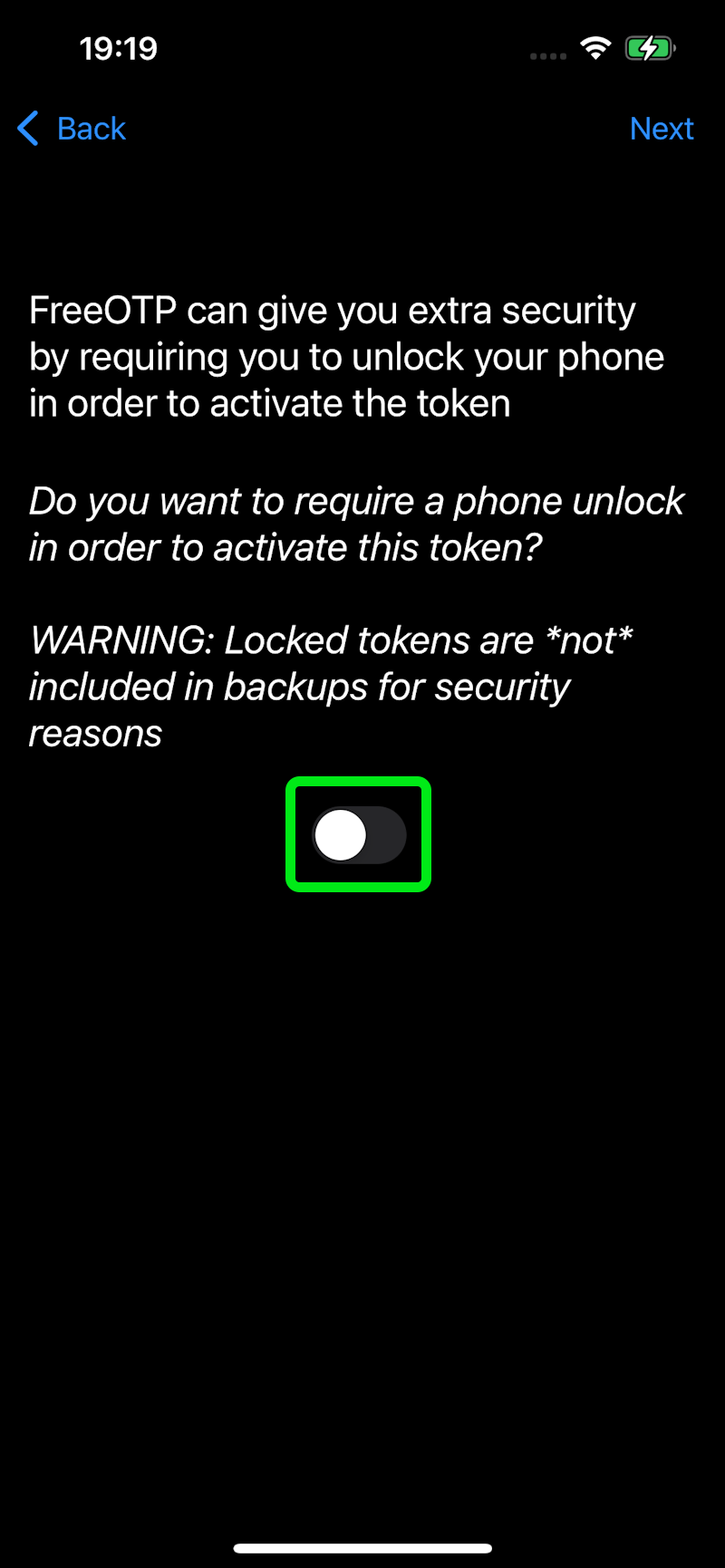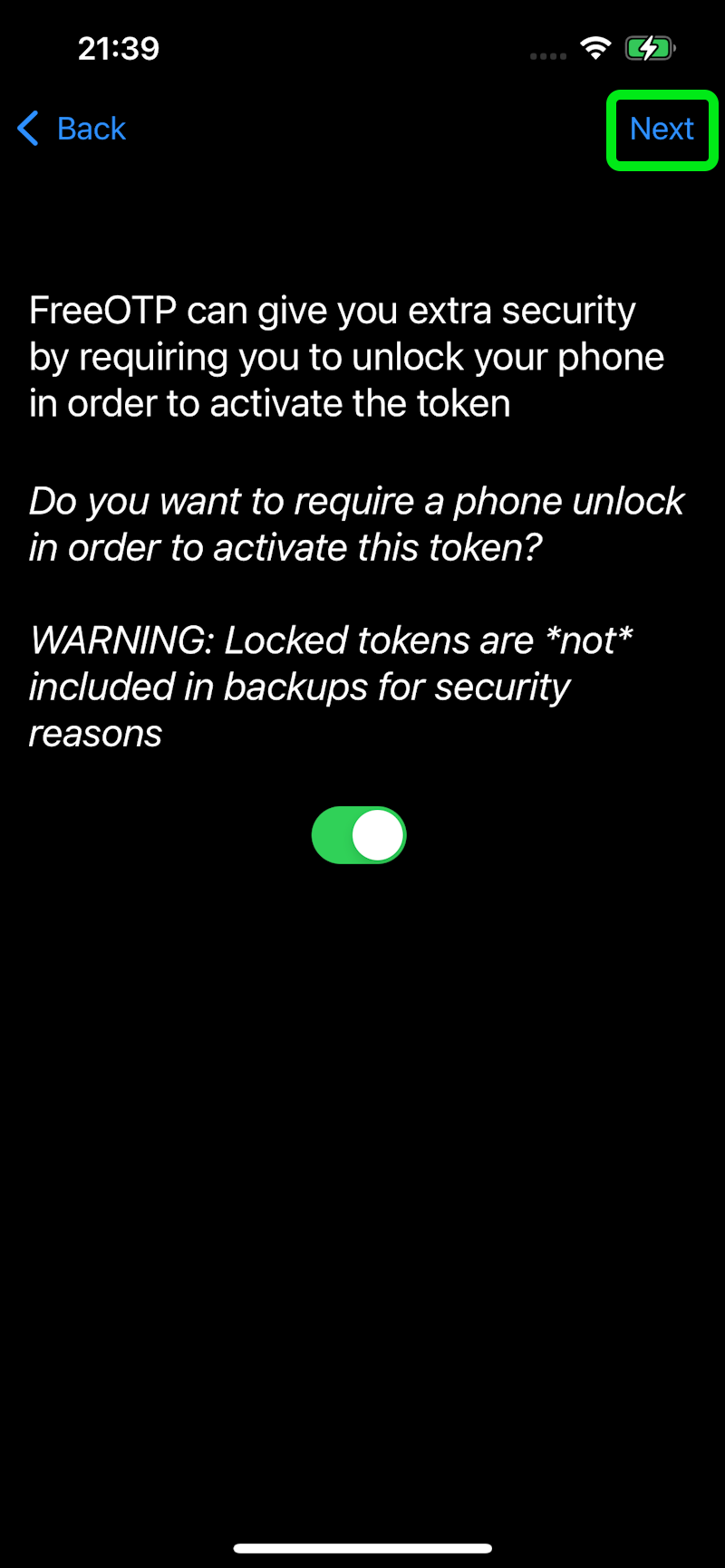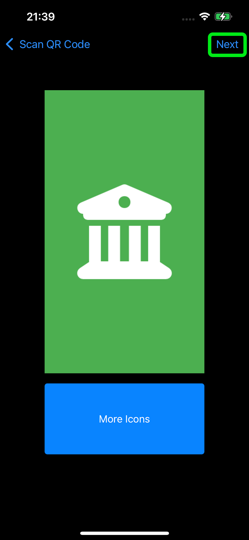 → Die Anzeige eines Codes erfordert dann ein entsperren des Geräts z.B. mit PIN oder Face-ID - "Next"