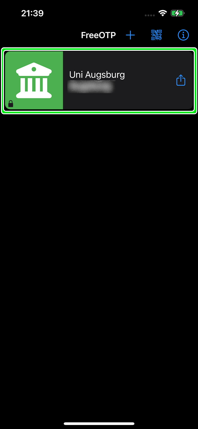 - Auf den neuen Account tippen um die Einmal-Codes einzublenden