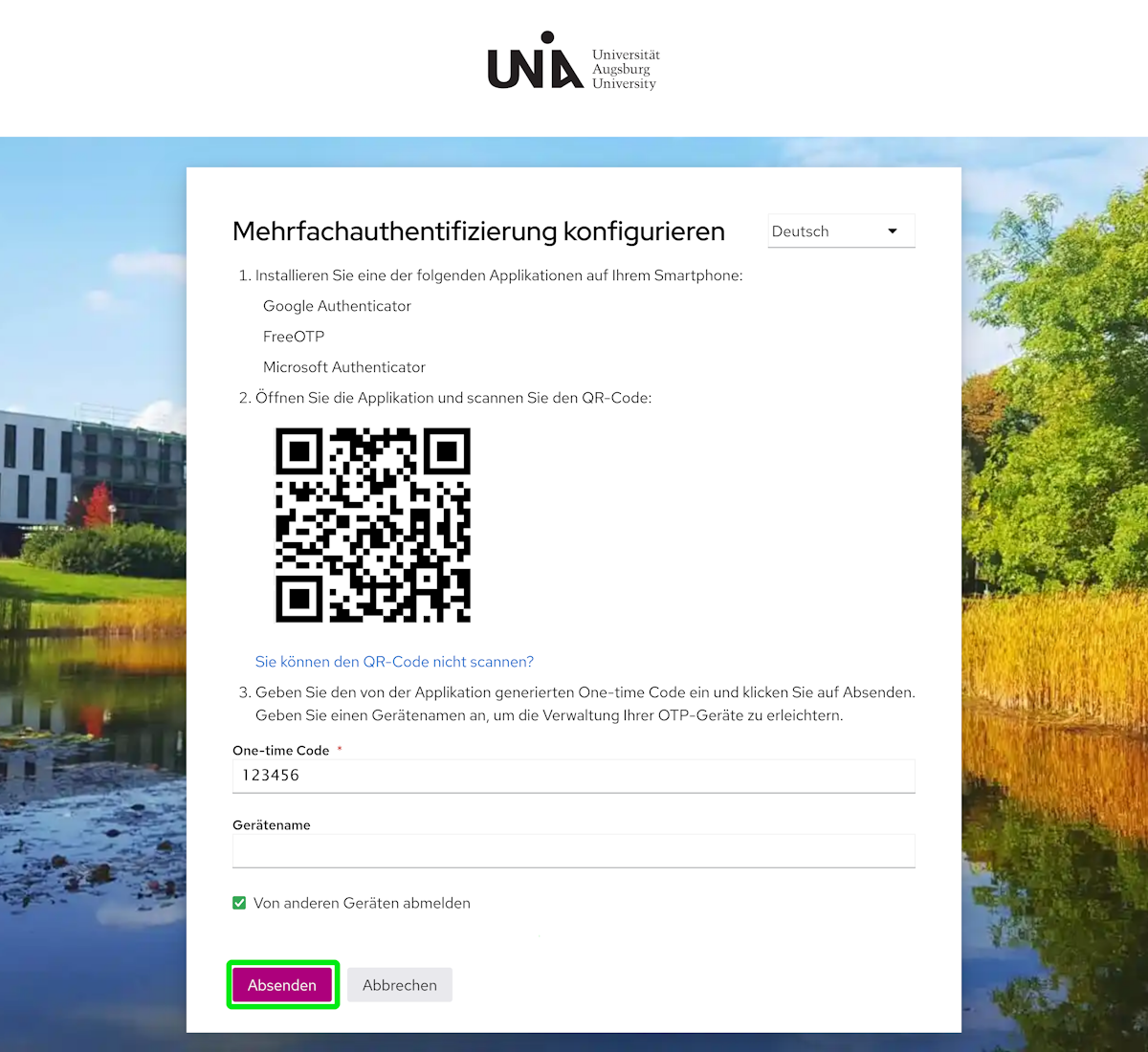 → Hinweis: Die Codes sind immer nur 30 Sekunden gültig - "Absenden"