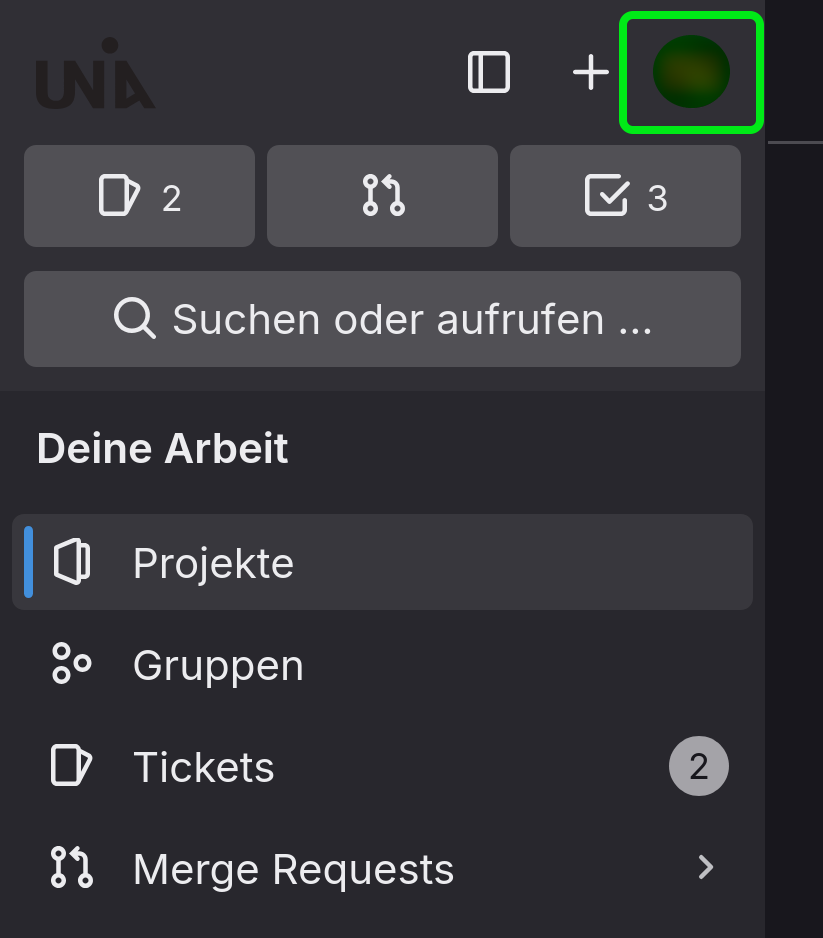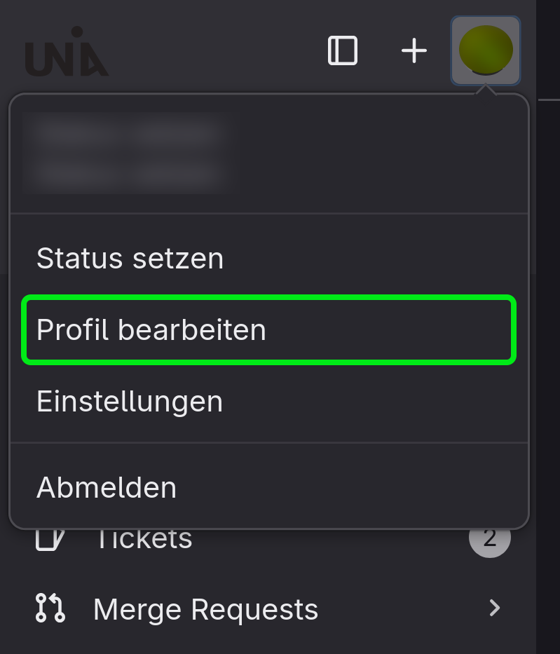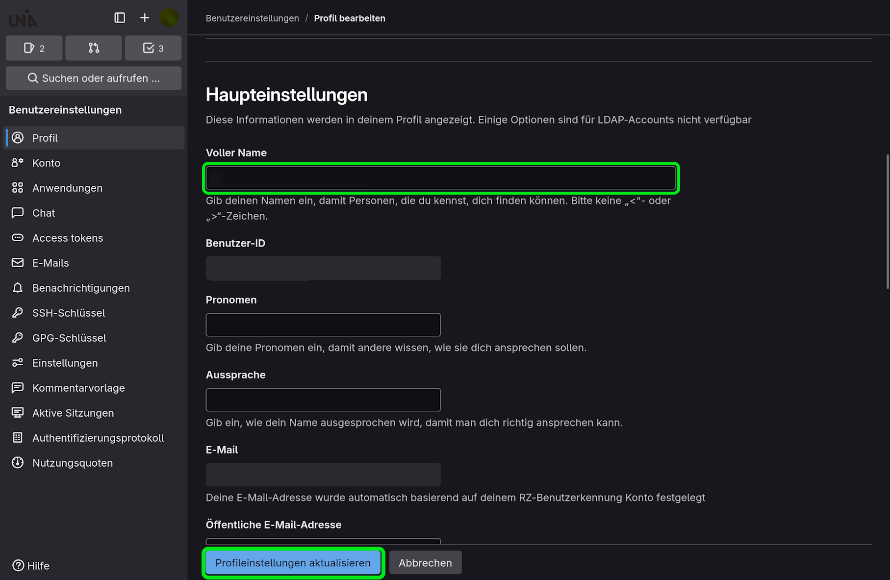 Der Anzeigename im GitLab kann in den Einstellungen selbst festgelegt werden.