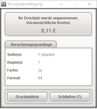 - An einem beliebigen Druckerterminal den Ausdruck starten - die Kosten werden erst beim Ausdruck abgerechnet