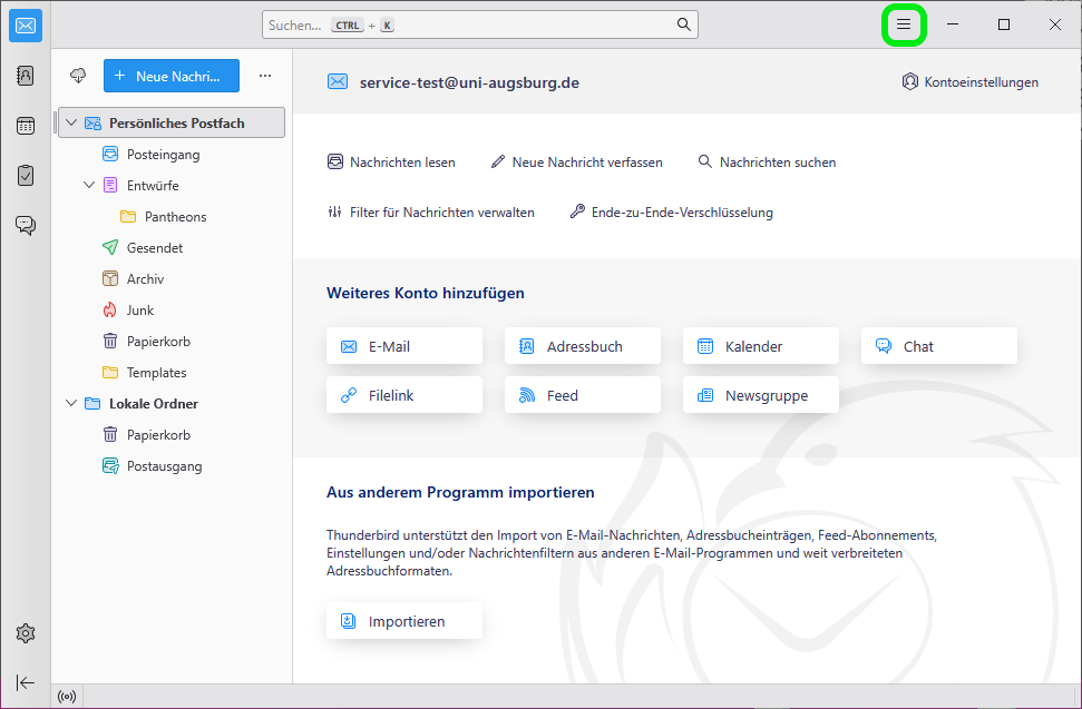 Thunderbird ist eine kostenlose, quelloffene Software, die für diverse Betriebssysteme (Windows, Linux, macOS) zur Verfügung steht, zusätzlich zur E-Mail kann diese auch mit unseren anderen Groupwarediensten (Kalender, Adressbuch) verbunden werden. Die Schritte sind nach der Installation für jedes Betriebssystem nahezu identisch.