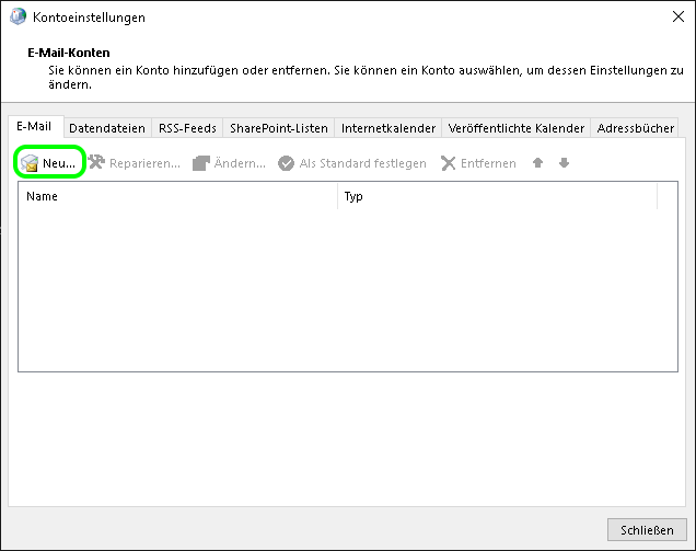 Microsoft hält sich seit Outlook 2016 mit dem neuen "vereinfachten" Einrichtungsassistent nicht mehr an die notwendigen Standards für IMAP-Postfächer und schließt Konten die einen von der Mailadresse abweichenden Benutzernamen verwenden aus. Um das universitäre Mailpostfach dennoch einzubinden, muss der klassische Dialog aus der alten Windows Systemsteuerung für die Einrichtung wie folgt verwendet werden: