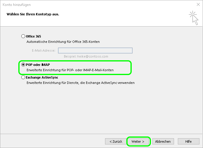 - Es startet automatisch die Einrichtung eines Postfachs - Fahren Sie mit Schritt 6 im nächsten Abschnitt fort
