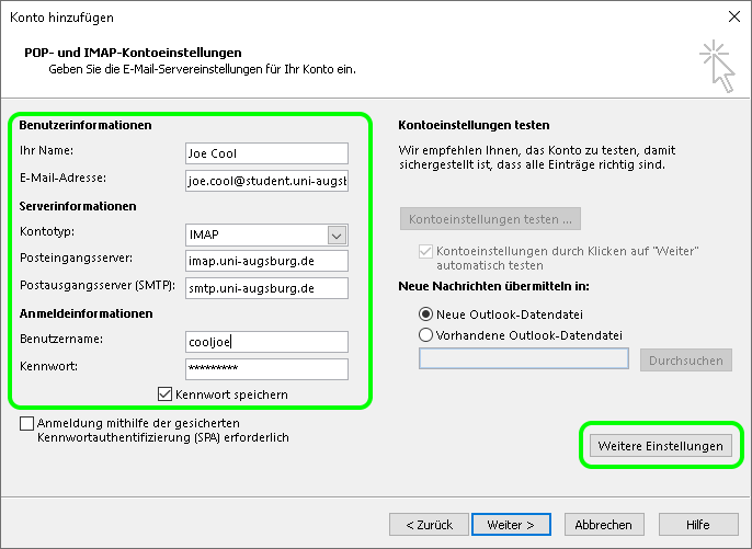 E-Mail-Adresse Meine-Mailadresse@xyz.uni-augsburg.de