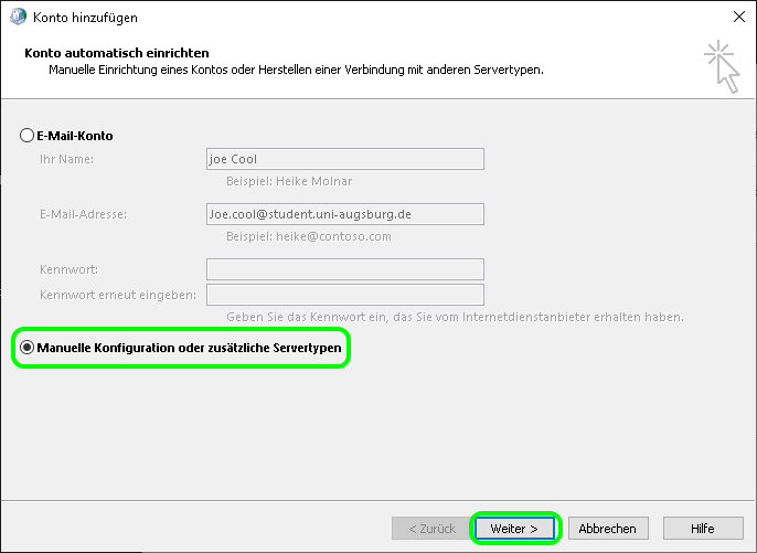 - "Manuelle Konfiguration oder zusätzliche Servertypen"