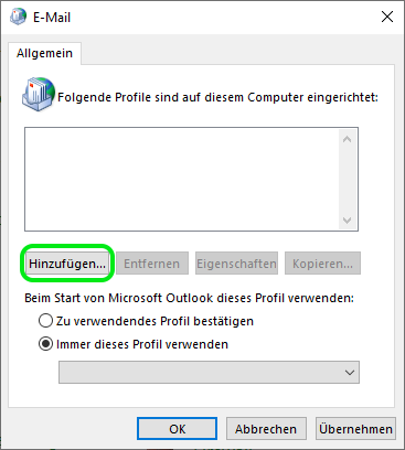 Nutzen Sie Outlook zum ersten mal müssen Sie ggf. zunächst ein neues Profil anlegen, falls Sie bereits ein Konto/Profil in Outlook eingerichtet haben fahren Sie direkt mit dem nächsten Abschnitt der Anleitung fort