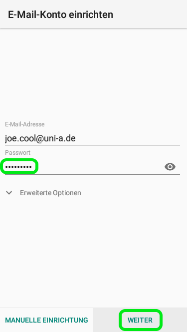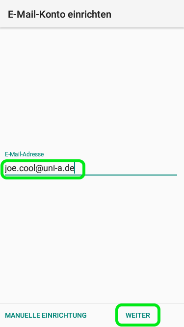 - Die universitäre E-Mailadresse eintragen (Falls unbekannt: IDM-Auskunft nutzen)