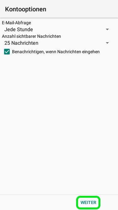 - Die gewünschten Optionen für den Mailabruf festlegen