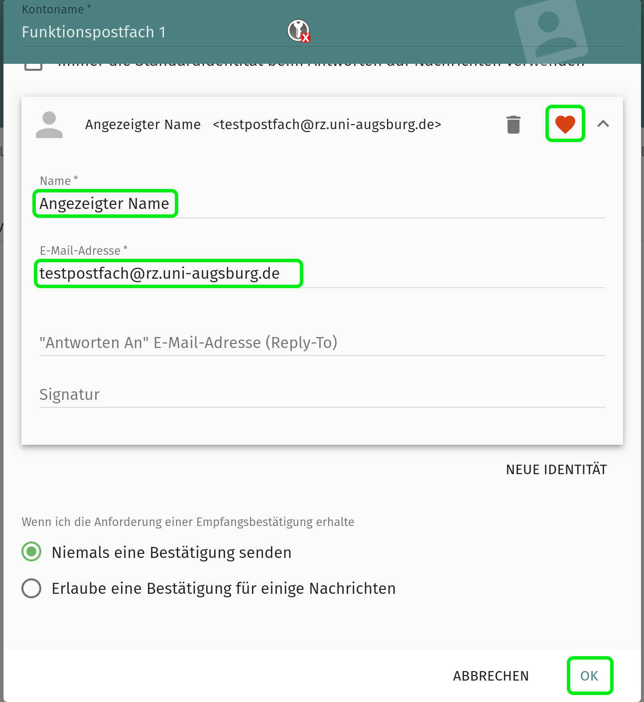 Name Alias, der dem Empfänger angezeigt wird E-Mail-Adresse E-Mailadresse des Funktionspostfachs