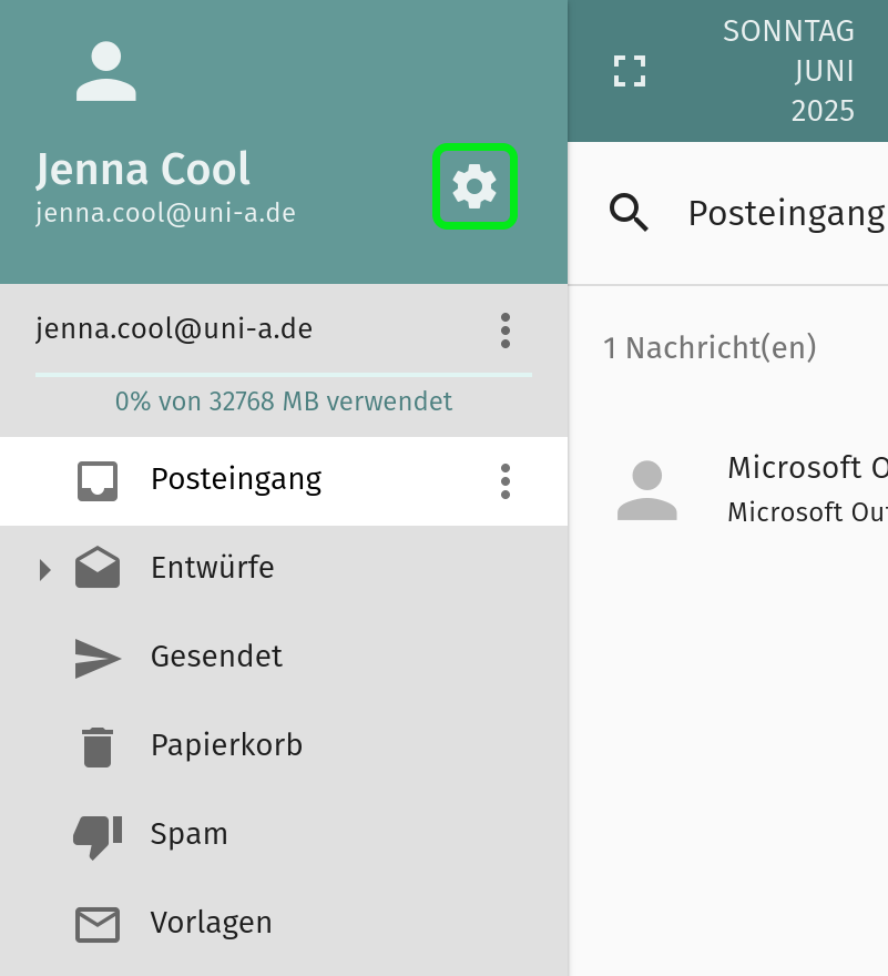- Die Einstellungen über das Zahnradsymbol öffnen