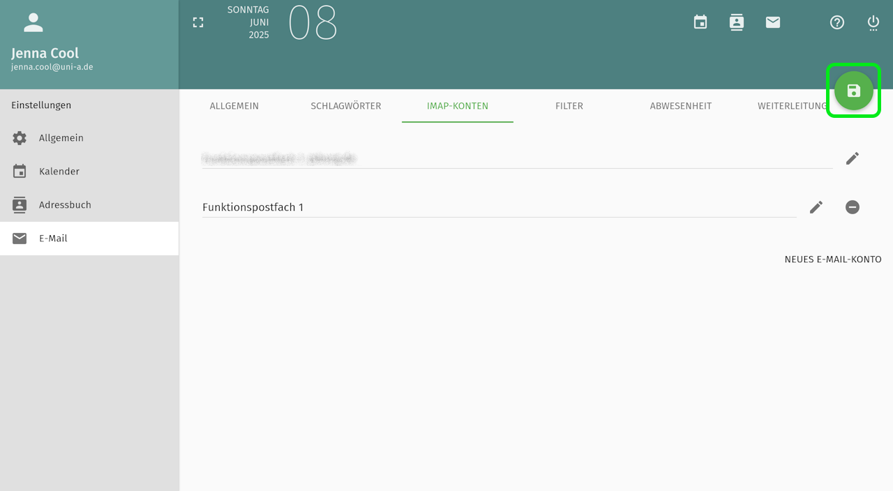 - Das Postfach sollte nun als weiteres Postfach in der E-Mailansicht angezeigt werden.