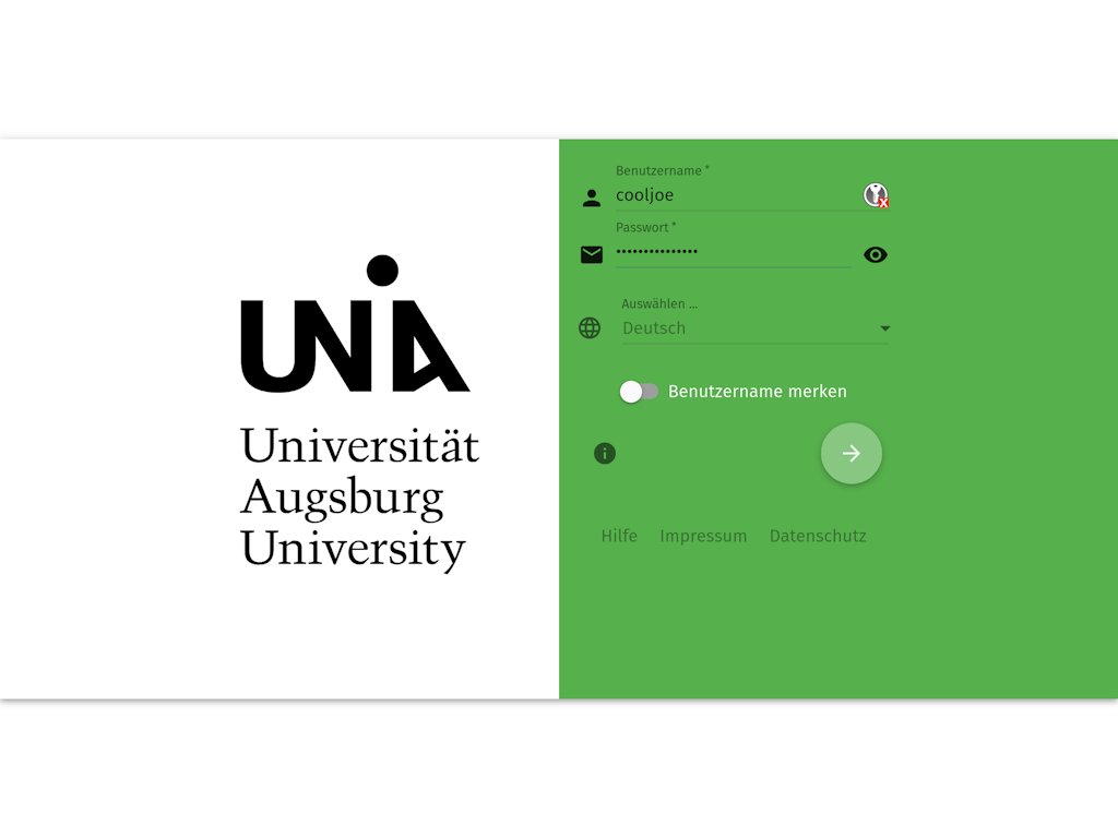 - https://webmail.uni-augsburg.de aufrufen und mit RZ-Benutzerkennung und Passwort anmelden