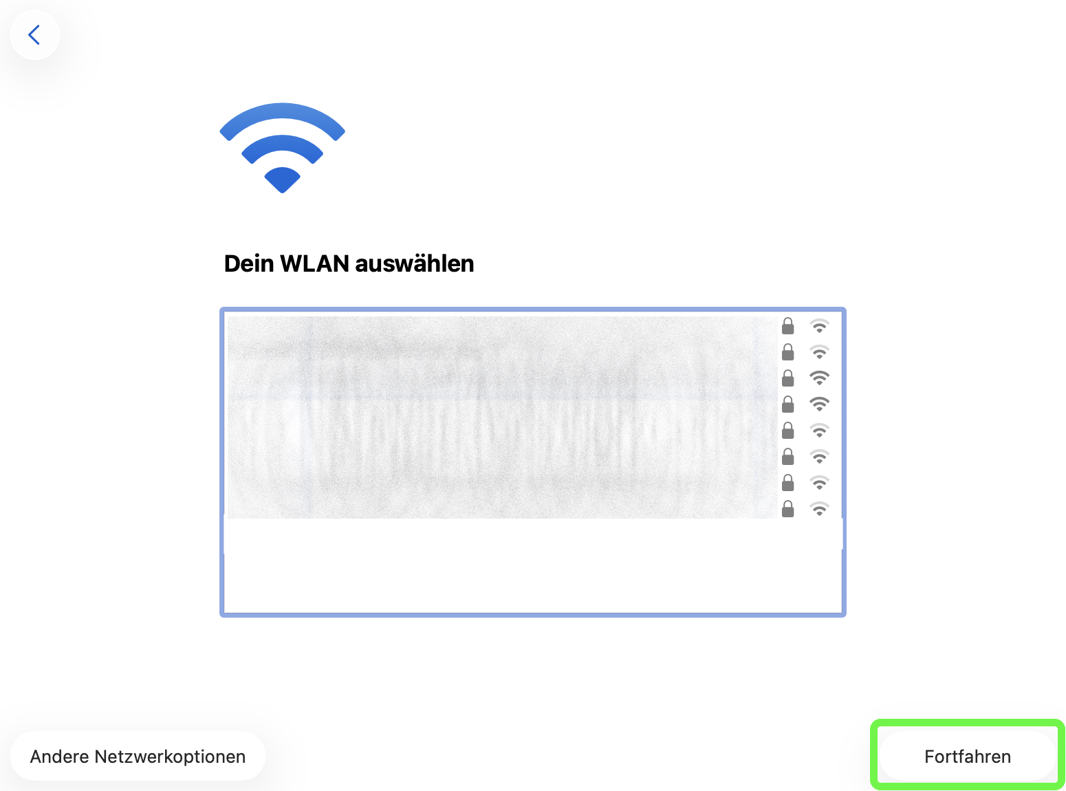 - Sofern keine LAN-Verbindung besteht jetzt per WLAN verbinden