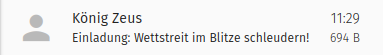 Absender/Empfänger Die erste Zeile zeigt den Absender oder den Empfänger (bei ausgehenden Mails) Betreff Die zweite Zeile zeigt den Betreff (bei Überlänge nur einen Teil)