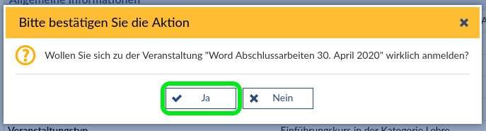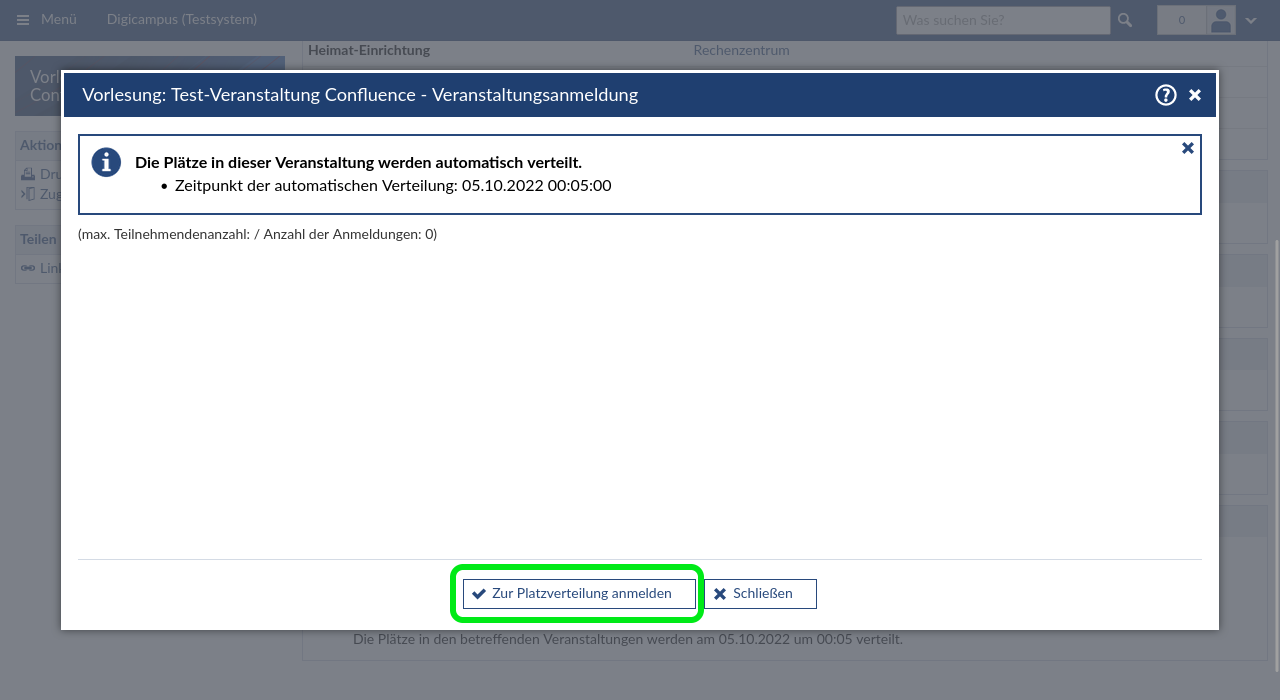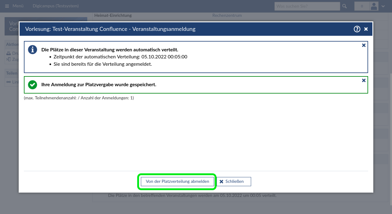- Wurde sich bereits zur Platzverteilung angemeldet, lässt sich diese Anmeldung über den gleichen Dialog auch wieder aufheben