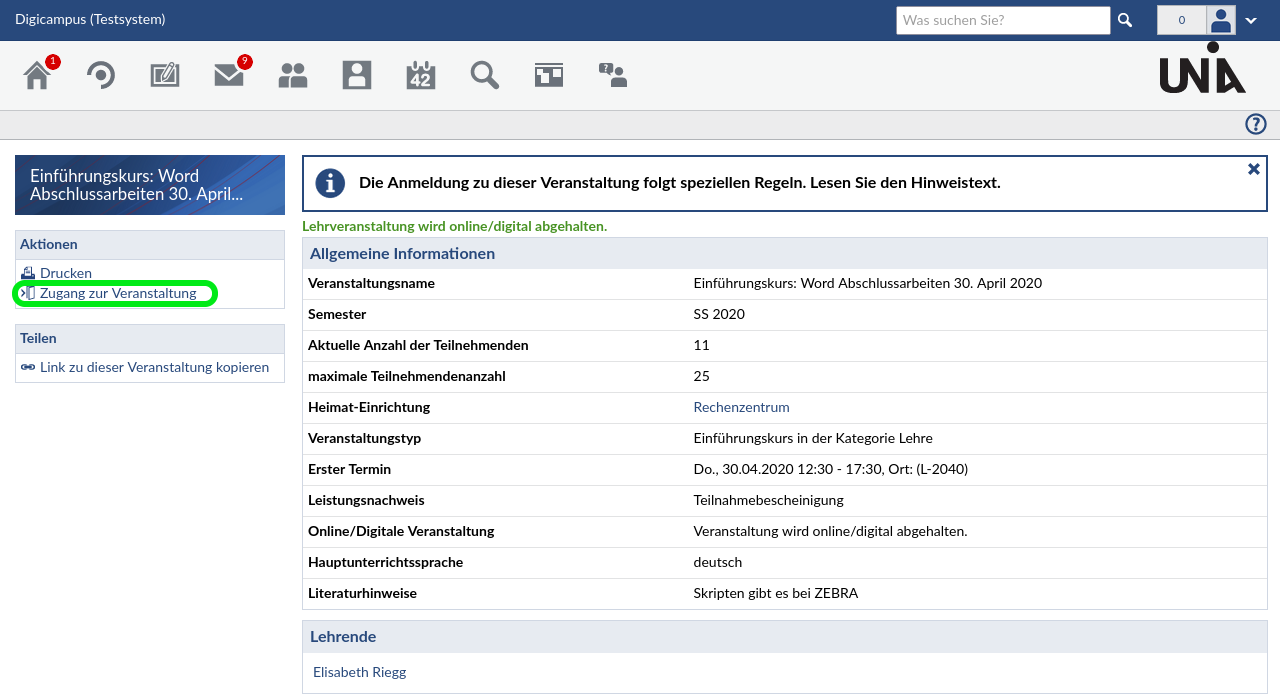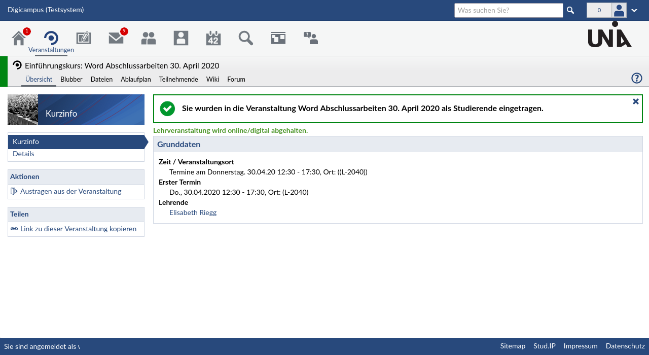 - Sie sind in die Veranstaltung eingetragen und haben Zugriff auf die Inhalte
