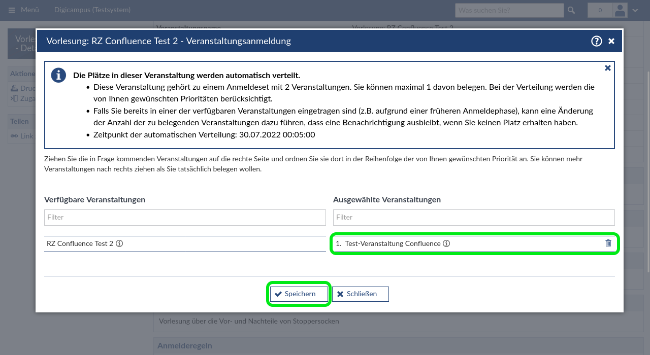- Die Anmeldung zur Platzverteilung ist nun erfolgt.