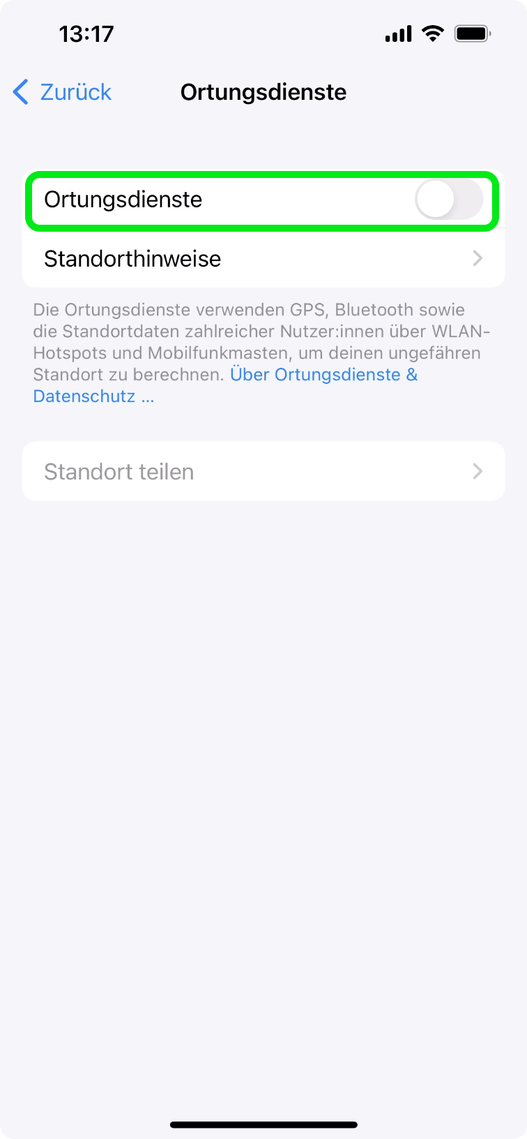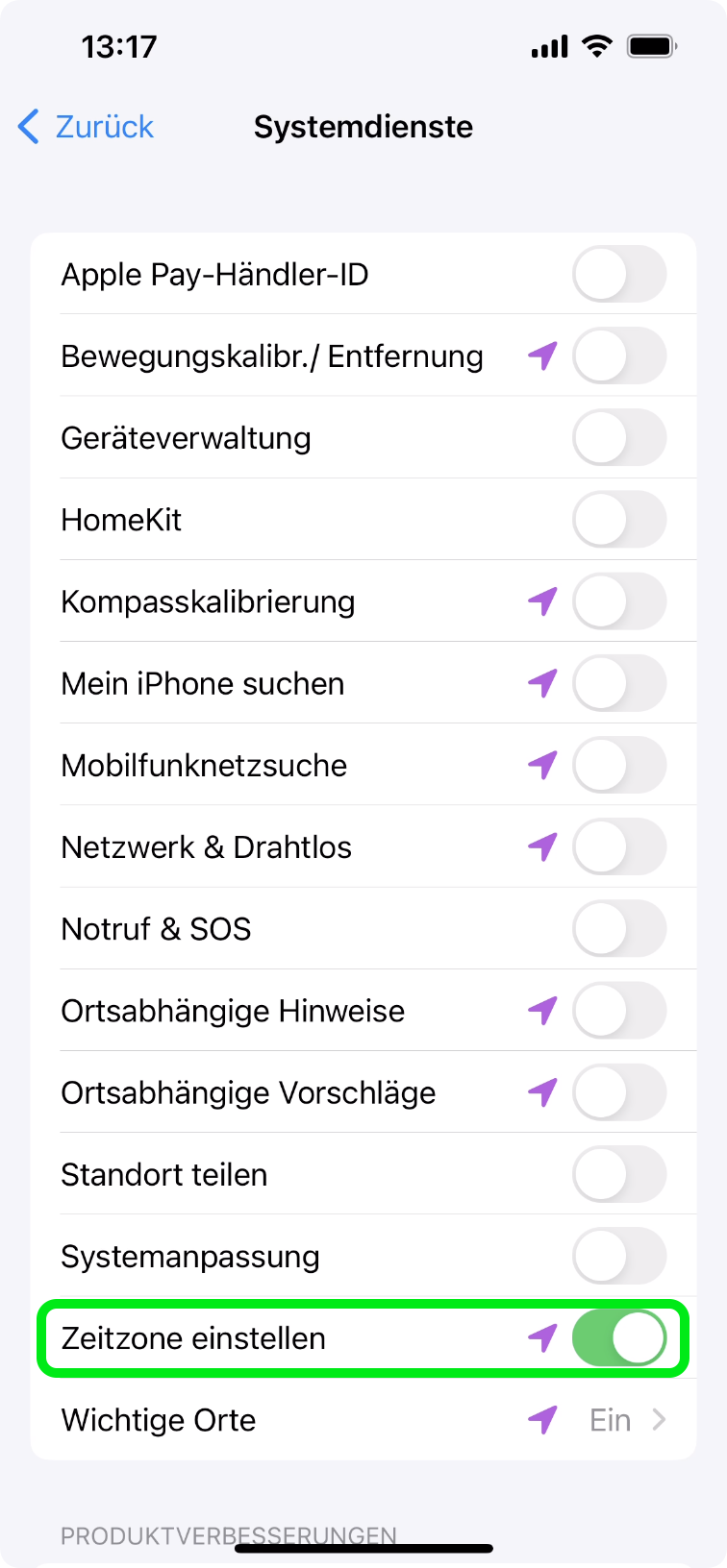 - Wir empfehlen alle Funktionen außer "Zeitzone einstellen" zu deaktivieren