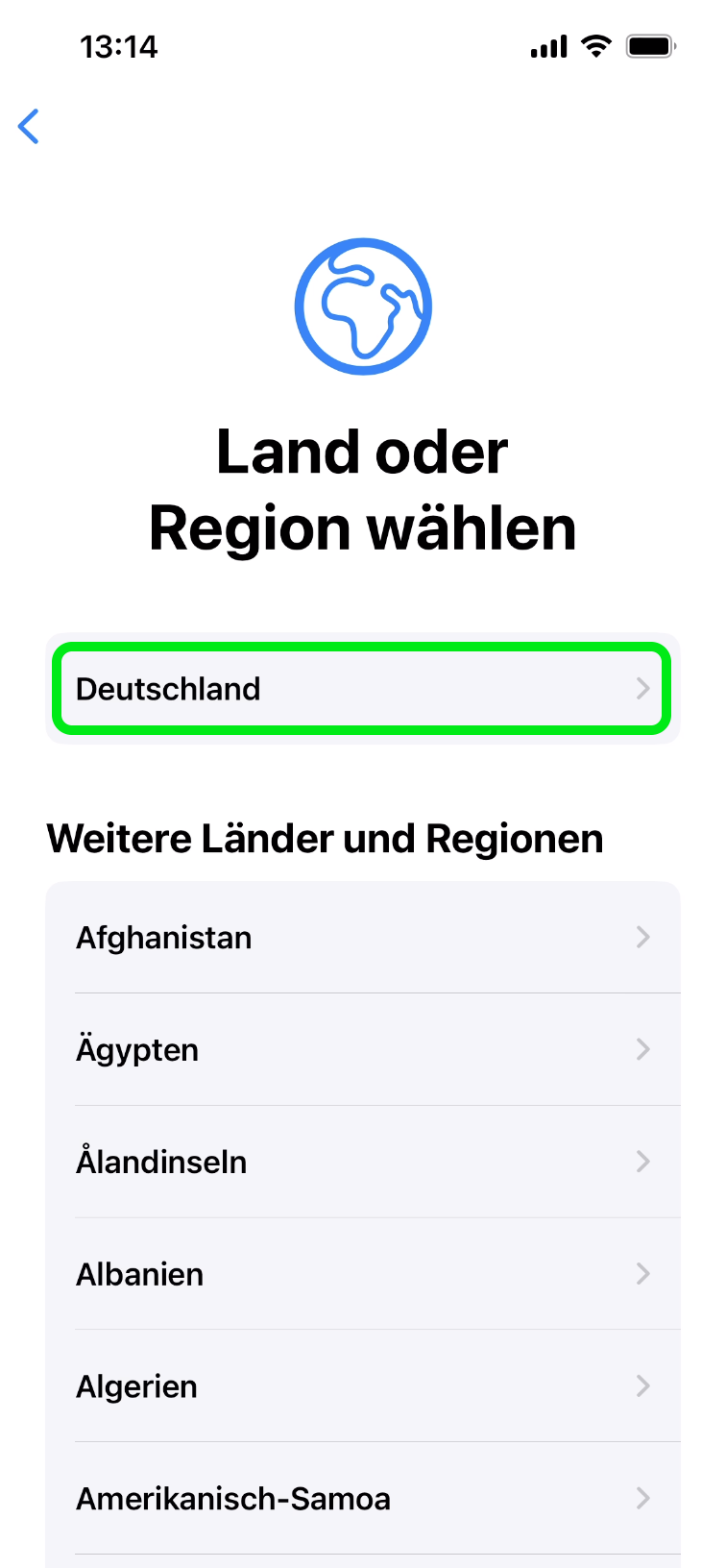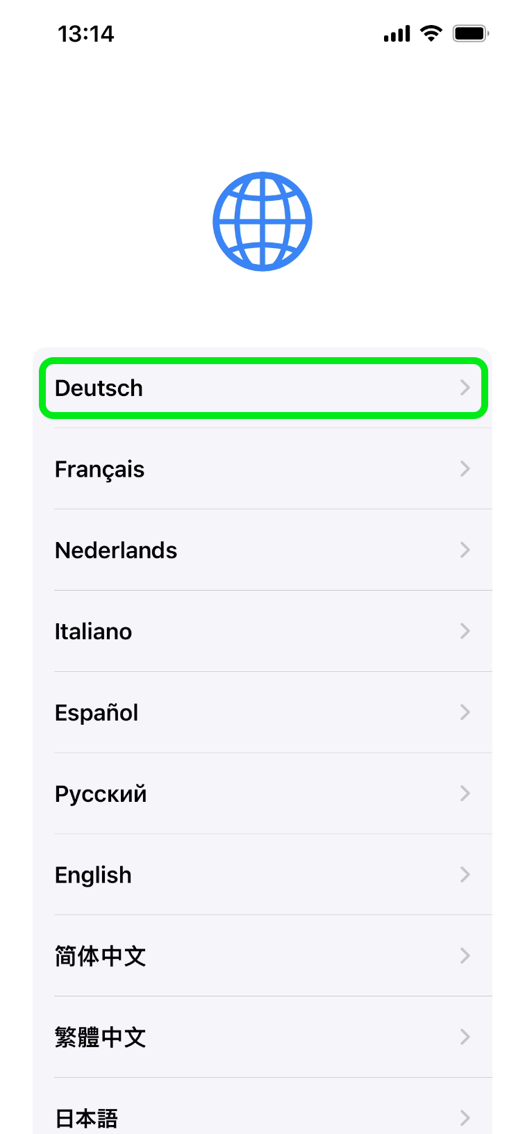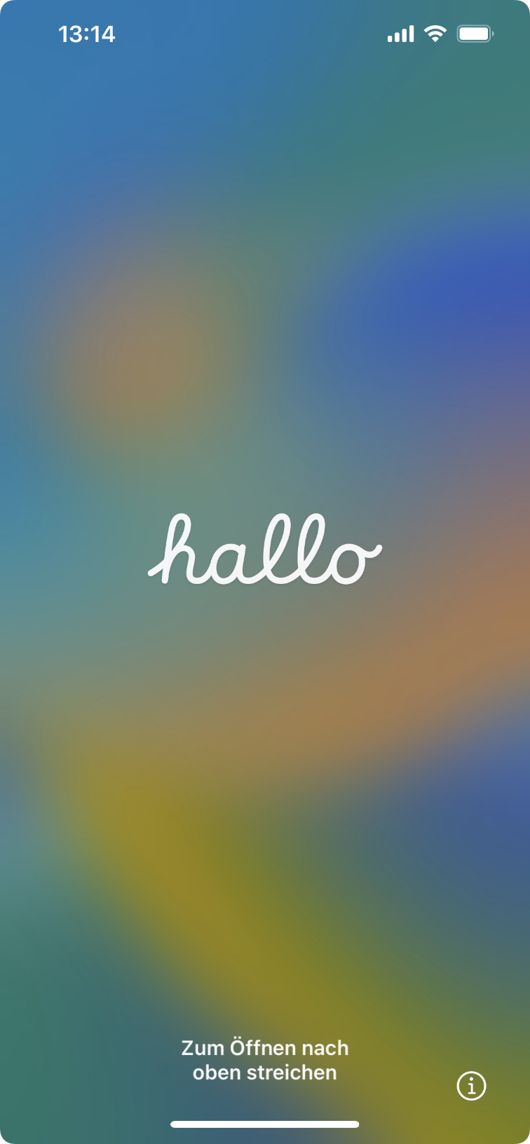 - Nach dem Einschalten den Begrüßungsbildschirm durch nach oben Wischen überspringen