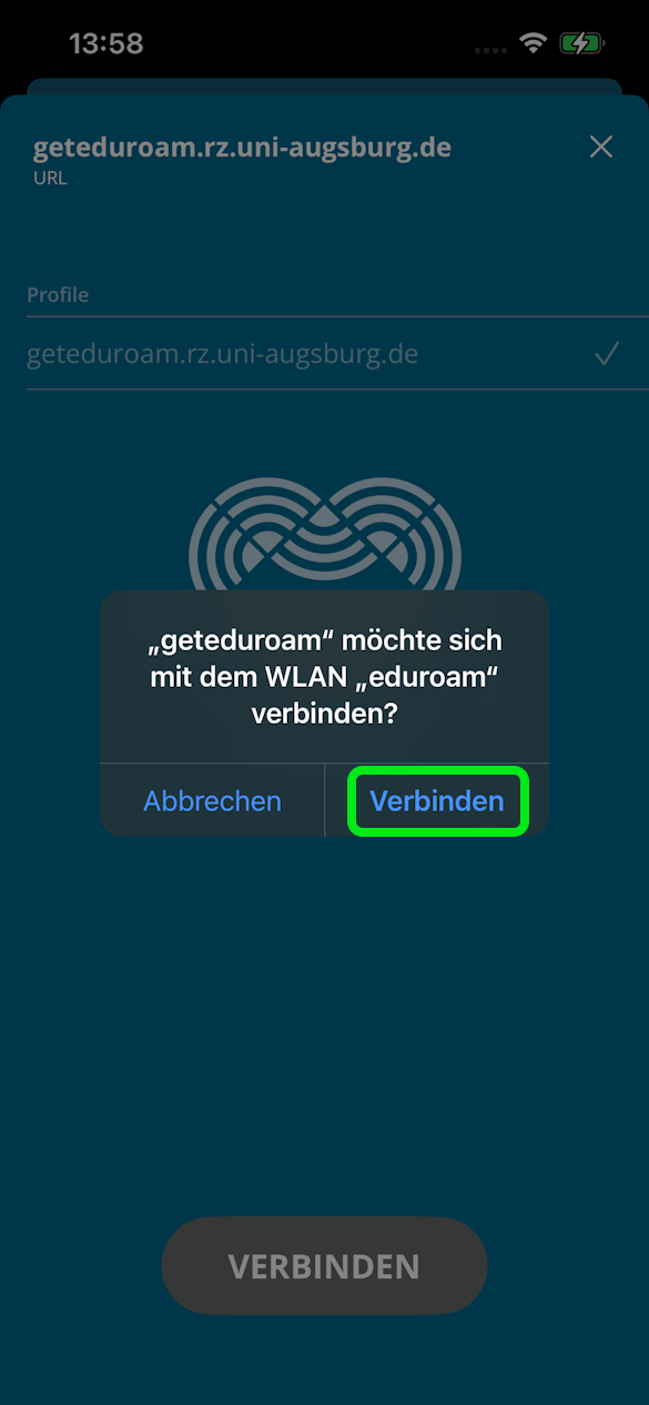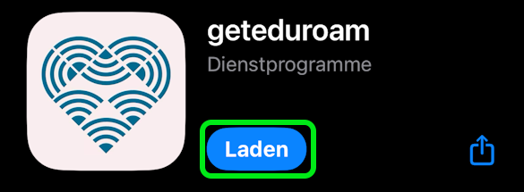 - Die App "geteduroam" aus dem AppStore installieren und öffnen