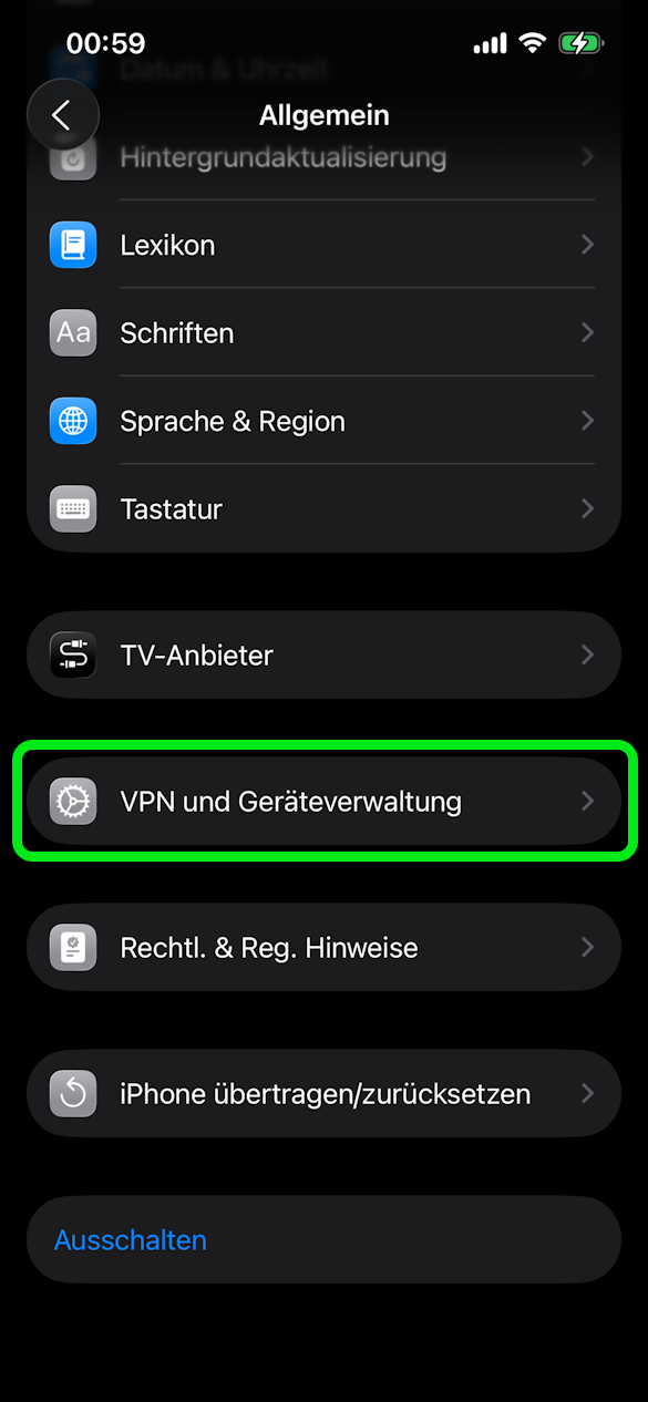 - "VPN und Geräteverwaltung"