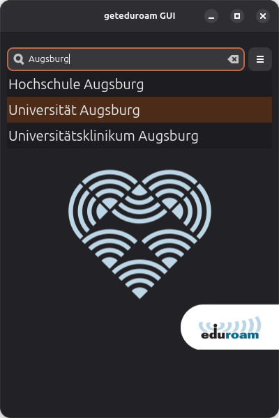 - Nach der Installation über das jeweilige Paketverwaltungssystem die Anwendung "geteduroam" starten
