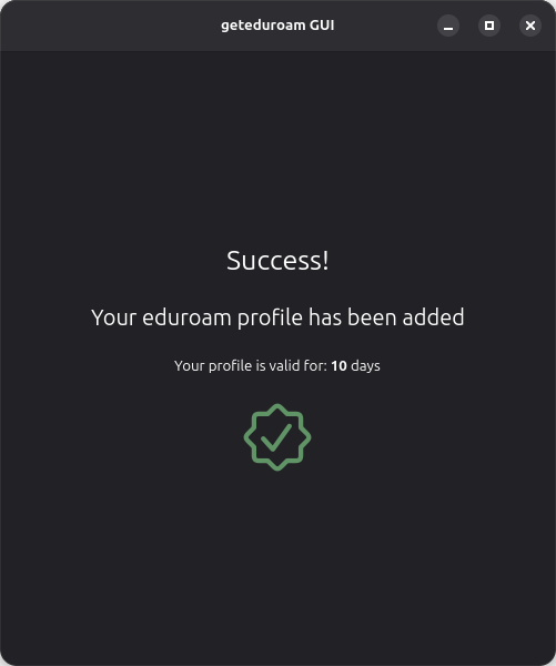 Für die Installation des universitären Netzwerks "eduroam" kann einfach der Einrichtungsassistent "geteduroam" verwendet werden. Dieser ermöglicht eine schnelle und einfache Konfiguration über Nutzerzertifikate, ähnlich ähnlich wie sie auch unser eduVPN-Dienst verwendet. Dieses Nutzerzertifikat ist dabei jeweils bis zum Ende des laufenden Semesters bzw. bis zum Beginn des folgenden Semesters gültig.