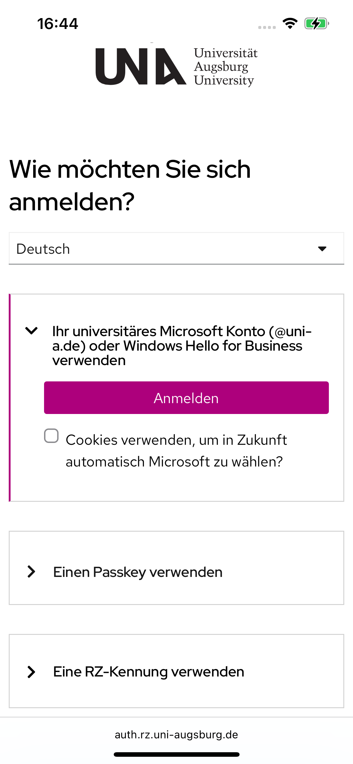 - Über den Browser mit RZ-Kennung und Passwort einloggen