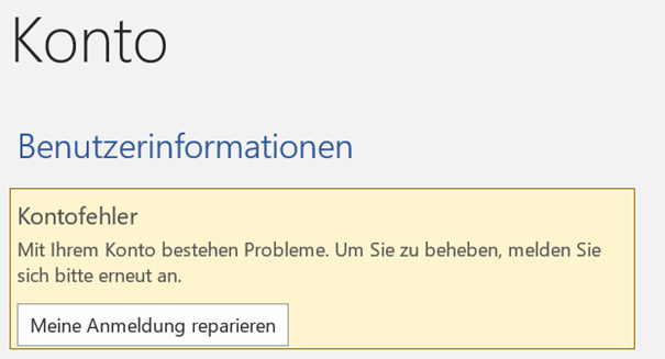 - Unter "Konto" auf den Button "Meine Anmeldung reparieren" klicken.